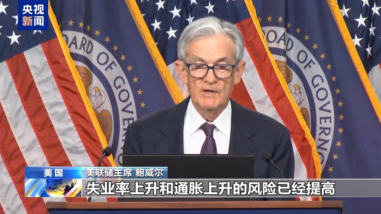 鲍威尔:关税战带来通胀和失业上涨风险